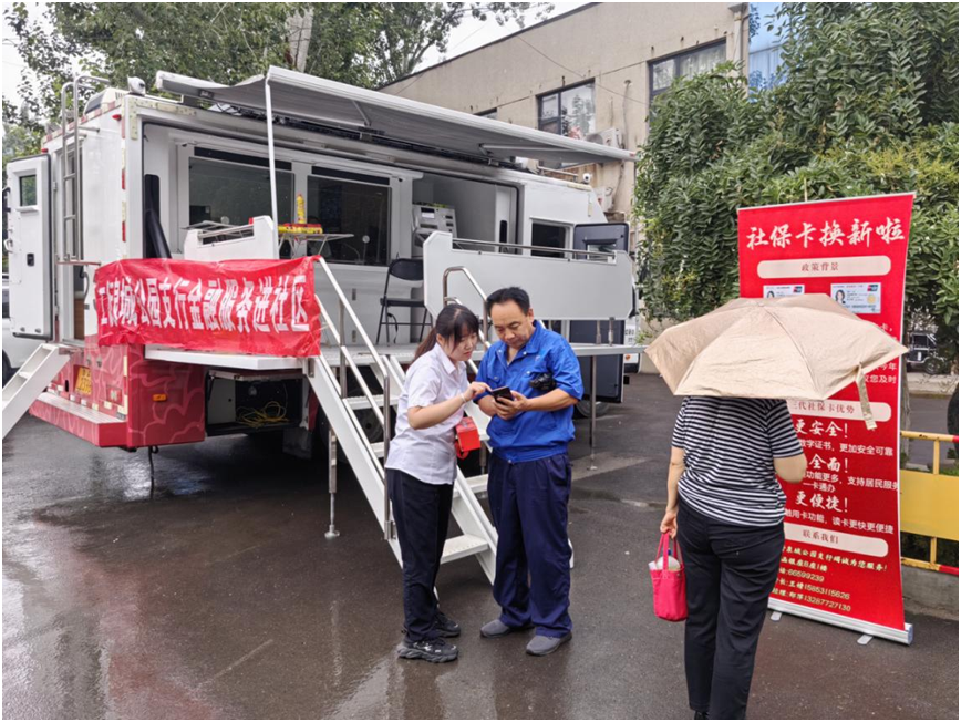 天气多变,流动银行车从未缺席。今年7月,济南突降暴雨导致社区积水严重,团队成员准时抵达,确保雨后正常为居民提供服务;高温天气里,他们还提前备好凉茶和遮阳棚,用贴心举措化解老人等待时的焦躁。“这群年轻人比天气预报还准时,他们的到来成了我们最安心的期待。” 社区管理方负责人评价道。