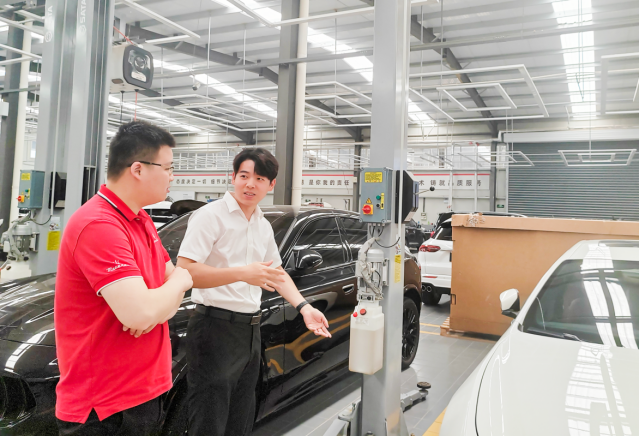 图为济南工行槐荫支行客户经理走访某汽车服务公司
